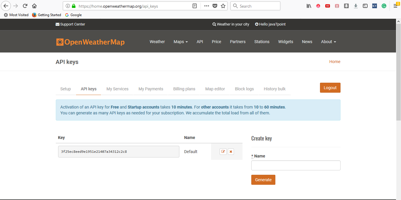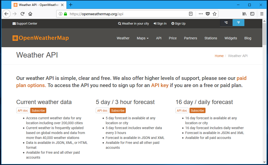 可以在此网站上注册以访问您的API密钥,该密钥随后用于获取正确的天气报告。