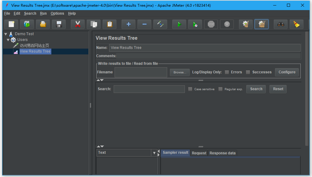 文件以启动JMeter界面。 - 单击“Test Plan”节点。