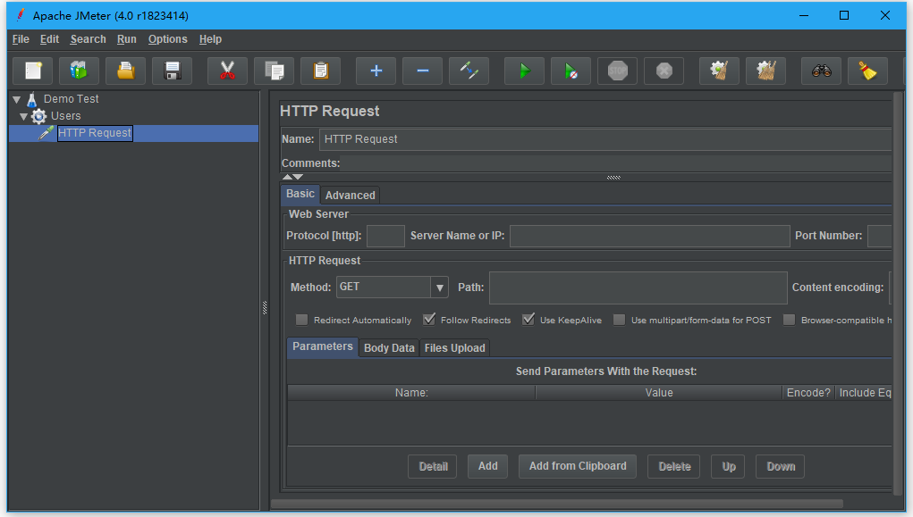 此测试计划仅适用于一个请求。 但是JMeter能够发送相同的请求,就好像许多用户正在发送它一样。 要测试具有多个用户的Web服务器,需要更改Users元素(线程组)设置。