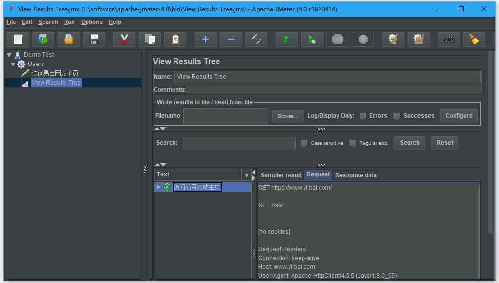 因为,我们将Users元素(线程组)的设置保留为单线程(一个用户)并循环1次(仅运行1次)。 因此,在View Result Tree Listener中将结果作为单个用户请求获取。