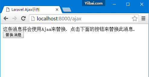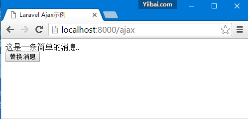 <html> <head> <title>Laravel Ajax示例</title> <script src = "https://ajax.googleapis.com/ajax/libs/jquery/2.1.3/jquery.min.js"> </script> <script> function getMessage(){ $.ajax({ type:'get', url:'/getmsg', data:'_token = <?php echo csrf_token() ?>', success:function(data){ $("#msg").html(data.msg); } }); } </script> </head> <body> <div id = 'msg'>这条消息将会使用Ajax来替换. 点击下面的按钮来替换此消息.</div> <?php echo Form::button('替换消息',['onClick'=>'getMessage()']); ?> </body> </html>