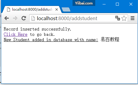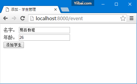 第14步 - 增加学生的姓名,然后点击“添加学生”按钮,将您重定向到下面的屏幕。看看灰色高亮行。 我们已经指定处理方法,在一个事件被触发执行HandleNewStudentAdded类的处理方法时添加此行。