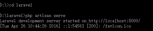 D:laravel>php artisan serve Laravel development server started on http://localhost:8000/