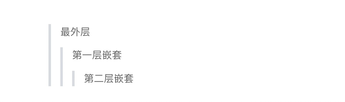 > 最外层 > > 第一层嵌套 > > > 第二层嵌套