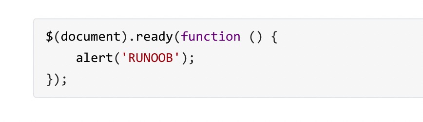 ```javascript $(document).ready(function () { alert('RUNOOB'); }); ```