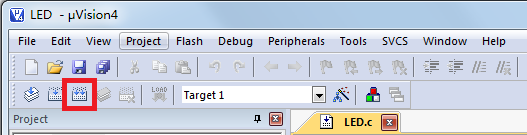 设置好以后呢,点击“Project-->rebuild all target files”,或者鼠标点击图2-19中红框内的快捷图标,就可以对程序进行编译了。