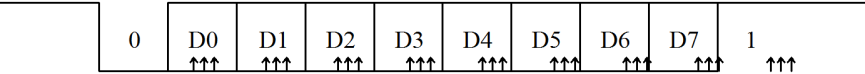 我们用三个箭头来表示7、8、9这三次的采集位置,大家可以注意到,当采集到 D7 的时候,已经有一次采集偏出去了,但是我们采集到的数据还是不会错,因为有2次采集正确。至于这个偏差允许多大,大家自己可以详细算一下。实际上 UART 通信的波特率是允许一定范围内误差存在的,但是不能过大,否则就会采集错误。大家在计算波特率的时候,发现没有整除,有小数部分的时候,就要特别小心了,因为小数部分是一概被舍掉的,于是计算误差就产生了。我们用 11.0592 M 晶振计算的过程中,11059200/12/32/9600得到的是一个整数,如果用 12 M 晶振计算12000000/12/32/9600就会得到一个小数,大家可以算一下误差多少,是否在误差范围内。