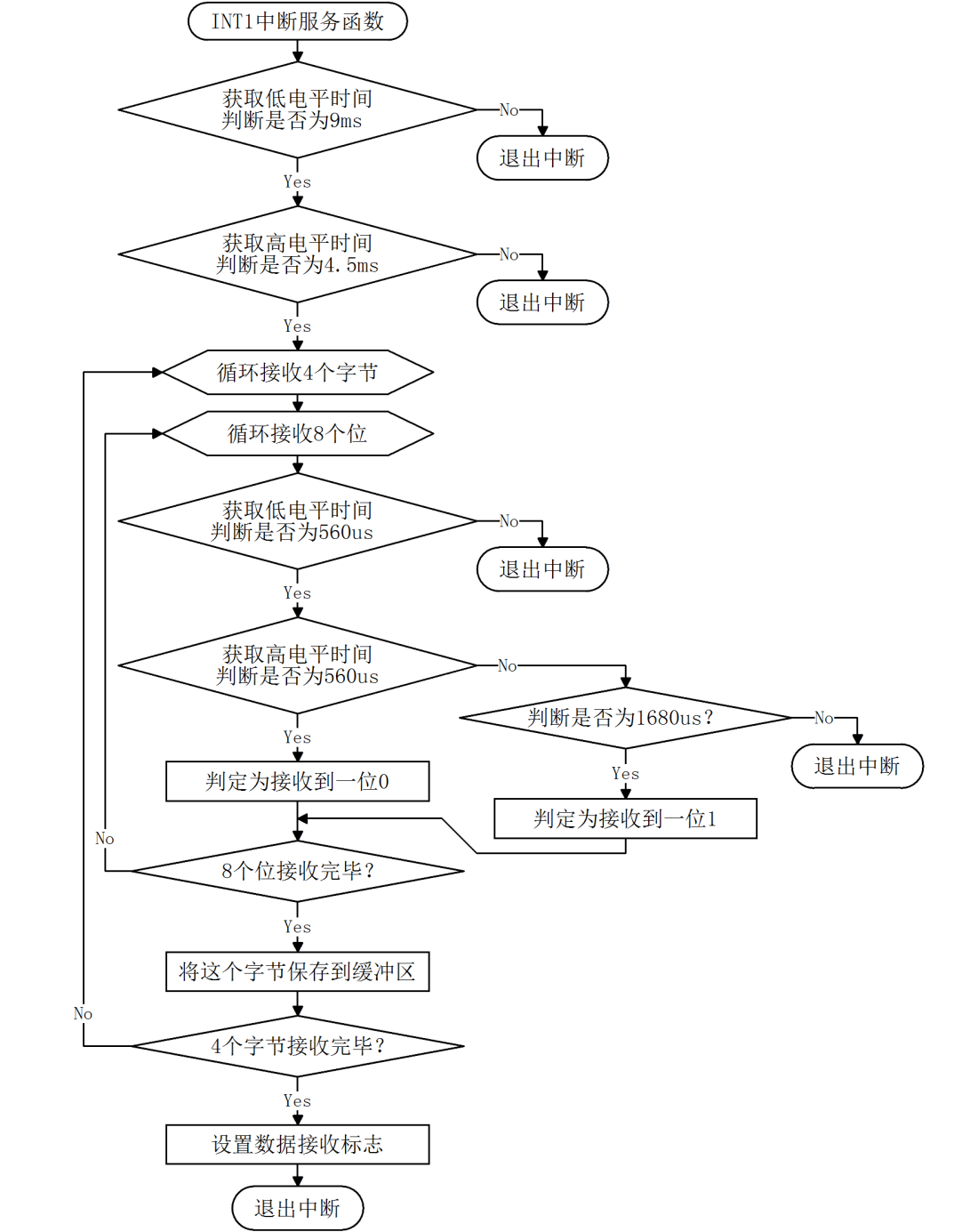图16-9 红外接收程序流程图