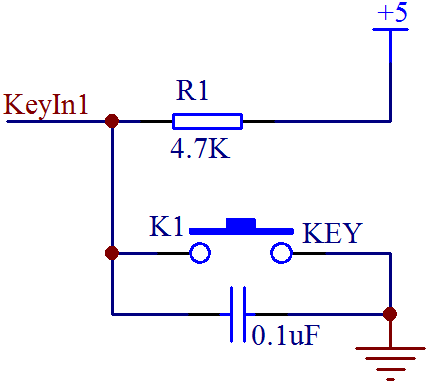 硬件消抖就是在按键上并联一个电容,如图8-11所示,利用电容的充放电特性来对抖动过程中产生的电压毛刺进行平滑处理,从而实现消抖。但实际应用中,这种方式的效果往往不是很好,而且还增加了成本和电路复杂度,所以实际中使用的并不多。