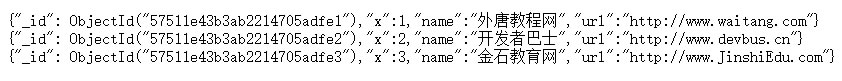 这里我们将三个网址数据插入到 test 数据库的 sites 集合,并读取迭代出来:
