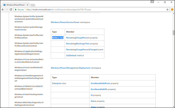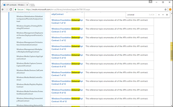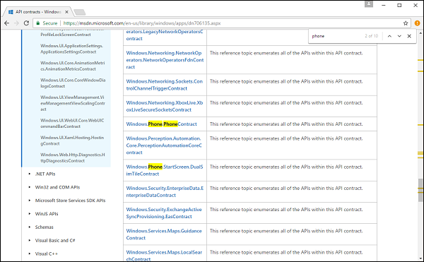设备系列中的一组API被分解为称为API契约的细分。可以在这里找到不同的API契约列表 - http://msdn.microsoft.com/en-us/library/windows/apps/dn706135.aspx