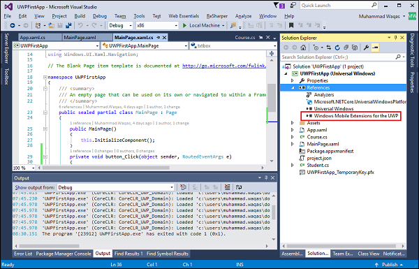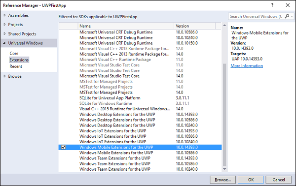 现在可以看到添加了用于UWP的Windows Mobile Extensions作为引用了。