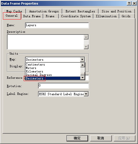 l 增加所有控制点,并检查均方差(RMS)后,在”影像配准”菜单下,点击“更新显示”。执行菜单命令“视图”-“数据框属性”,设定数据框属性