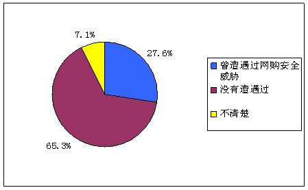 由于网购市场庞大且高速增长,又和网上支付直接关联,因此,成为不法人士攻击的新目标。《2010年中国网络购物安全报告》显示,2010年,曾经遭遇过网购安全威胁的达到27.6%;不清楚是否遭遇过网购安全威胁的占7.1%,没有遭遇网购安全威胁的为65.3%。