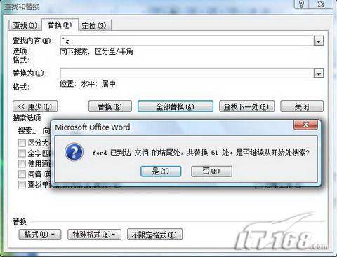对于嵌入式的图片,无论是Word 2007或是Word 2003,都可以直接打开“查找和替换”对话框,先将“查找内容”设置为“^g”,然后将光标定位到“替换”的文本框中,首先单击“更多”按钮,此时可以看到搜索选项、格式、特殊格式等内容,从格式的下拉菜单中选择“图文框”,将水平位置设置为居中,然后返回“查找和替换”对话框,单击“全部替换”按钮后即可生效(见图2)。