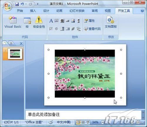 做完上面这些,整个工作就算大功告成,现在已经可以在PowerPoint 2007中看到插入的Flash动画了,怎么样,还是非常不错吧,如图8。