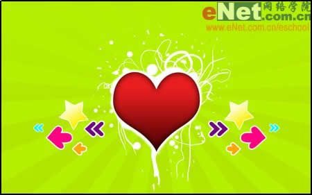 用自定在图中建立一个五角心的形状,并设置图层样式: