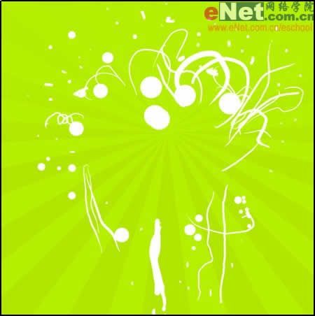 首先在桌面上建立一个1024*768,分辨率72像素的文件。背景色用#B5F000颜色代码进行填充。用钢笔工具中的形状图层在图中建立以下形状颜色代码设置为#B1E600: