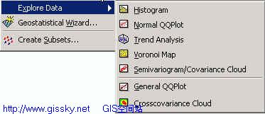 ArcGIS地统计扩展模块的菜单非常简单,如下所示,但由此却可以完成完整的空间数据分析过程。