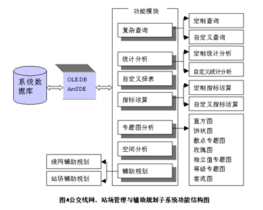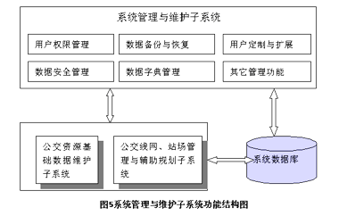 1)数据资源的管理维护:建立基础地理空间数据库和公交资源数据库,为公交运营管理和决策提供必要的信息支持,实现系统数据的动态更新维护机制,并为系统数据库扩展留有接口。