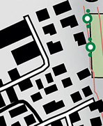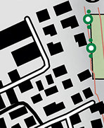 规则也可以利用数据库中要素已有的属性字段进行明确的设置,进而控制要素的表现效果。这类字段也可以通过空间处理过程赋值。 空间处理提供完整的强大的GIS工具包帮助我们确定需求,并计算出所需值。一个典型的例子是通过空间处理工具中的拓扑引擎查找死胡同并设置一个数据库字段,然后可以通过这个字段控制线的终点的样式为平的,而不是圆的。(图4)