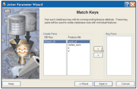 5. 在Match Keys页,选中数据库中的主键(ROAD_ID)和要素属性中的 road_id,点击 > 按钮接受选择。点击Next。