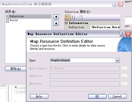 2.MapResourceManager属性中增加一个名为Selection的MapResource,并将它移动到编号为0的位置,即显示在所有MapResource最上面。