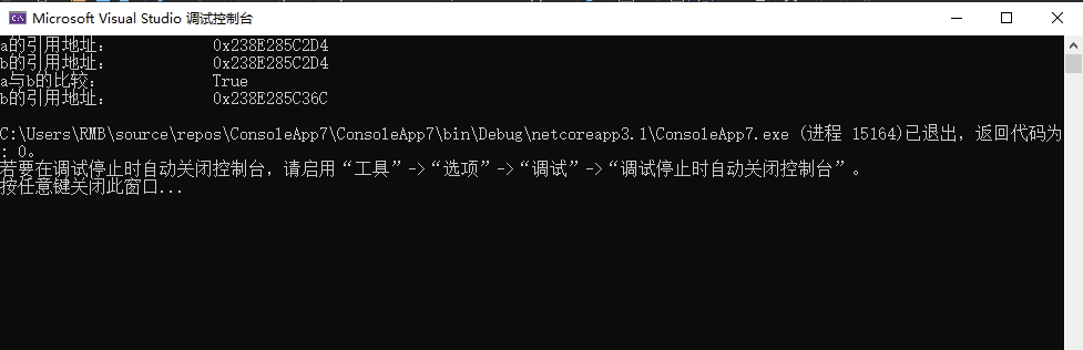 Console.WriteLine("a与b的比较:tt" + Object.ReferenceEquals(a, b));