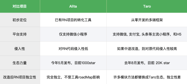 Taro的定位:它和Alita不同,不是既有项目的转化工具,而是从零开始开发的多端框架。