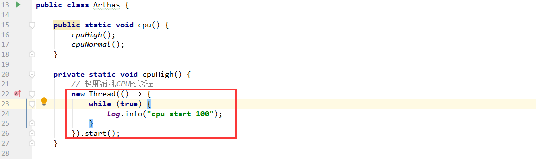 首先编写一个有各种情况的测试类运行起来,再使用 Arthas 进行问题定位,
