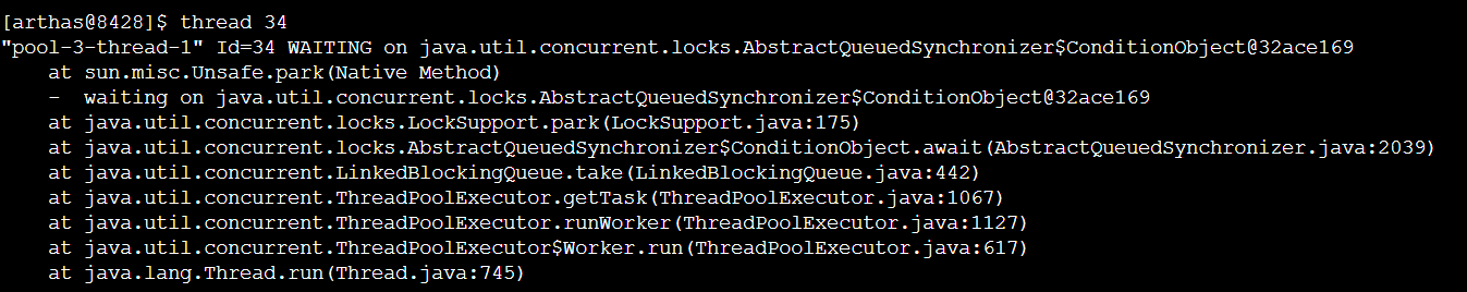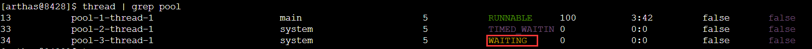 使用 thread | grep pool 命令查看线程池里线程信息。