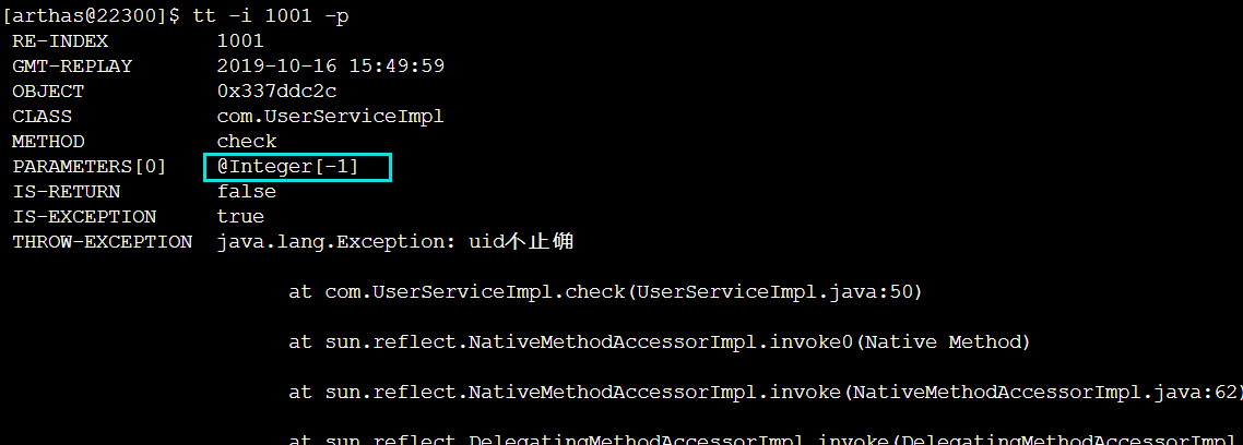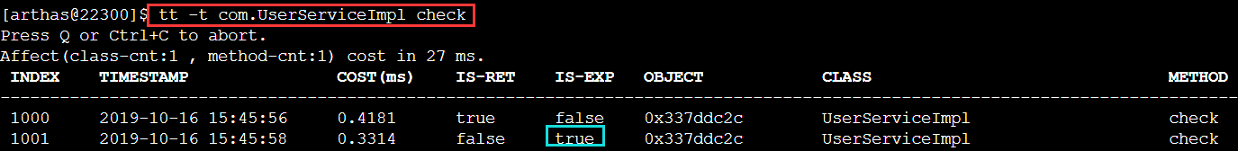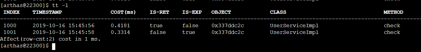 开始记录方法调用信息:tt -t com.UserServiceImpl check