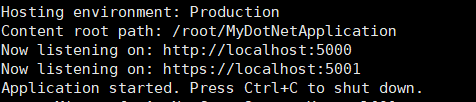 到对应的项目目录,运行项目,输入以下命令: 进入项目目录: cd MyDotNetApplication/ 运行项目: dotnet FirstCore.dll -d &