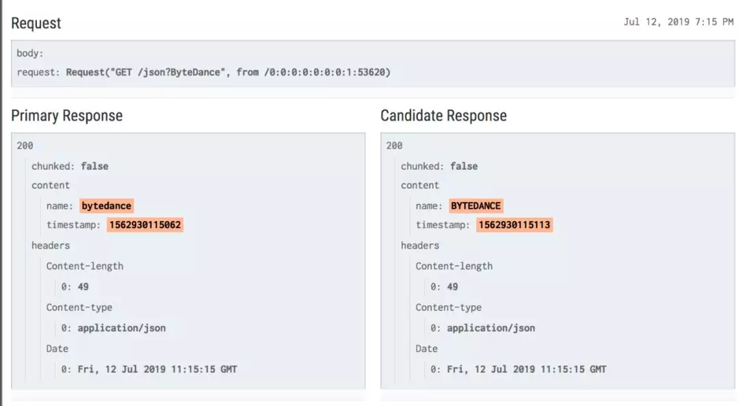 如图所示,我们可以看到每个请求在不同节点上的差异之处,如果点击“Exclude Noise”,则可以消除噪声,看到最终的diff结果。