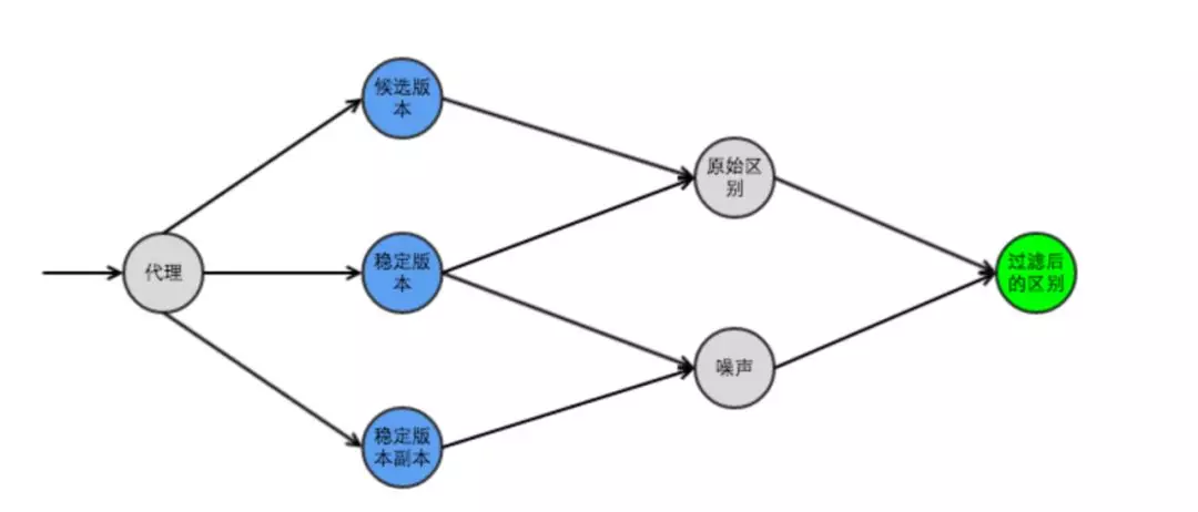 原始区别为候选版本和稳定版本之间输出的区别,其中可能会包含上述的噪声。