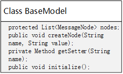 public class MessageNode {private String name;private String value;public String getName() {return name; }public void setName(String name) {this.name = name; }public String getValue() {return value; }public void setValue(String value) {this.value = value; }public MessageNode() { super(); } }