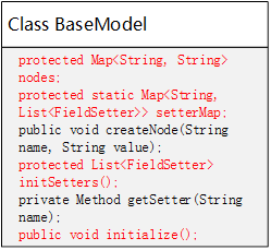 2)为了提高循环遍历的速度,setterMap的第二层改成链表,链表的成员是内部类FieldSetter,结构如下: