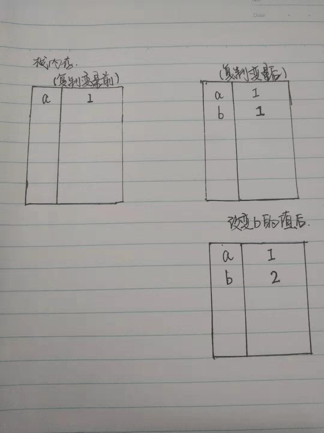 3、将一个变量赋值给另一个变量时,基础类型复制的是值,赋值完成两个变量在没有任何关系;而对象类型的复制的是地址,修改一个变量另一个变量也会跟着一起变化。(如何解决这个问题?关于深拷贝and浅拷贝)
