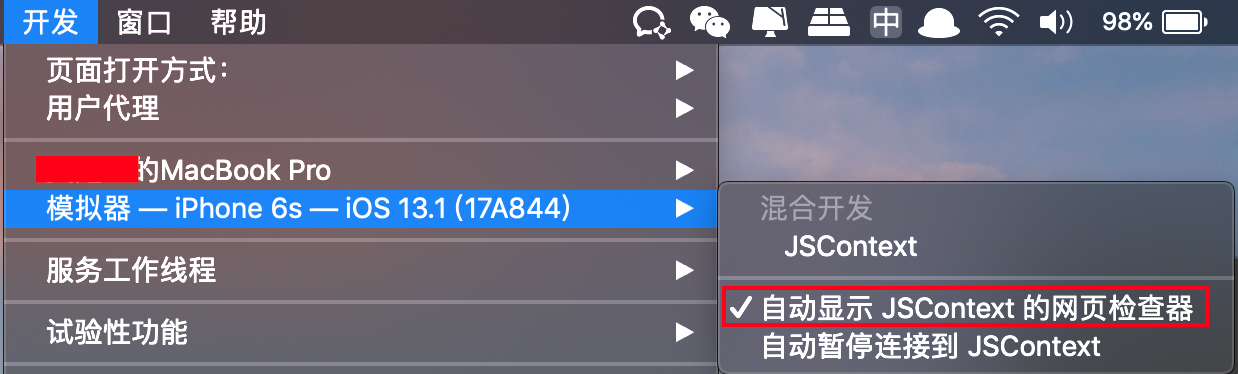 [1] 首先打开Safari浏览器的web检查器,会用来查看js运行的效果 ,控制台打印