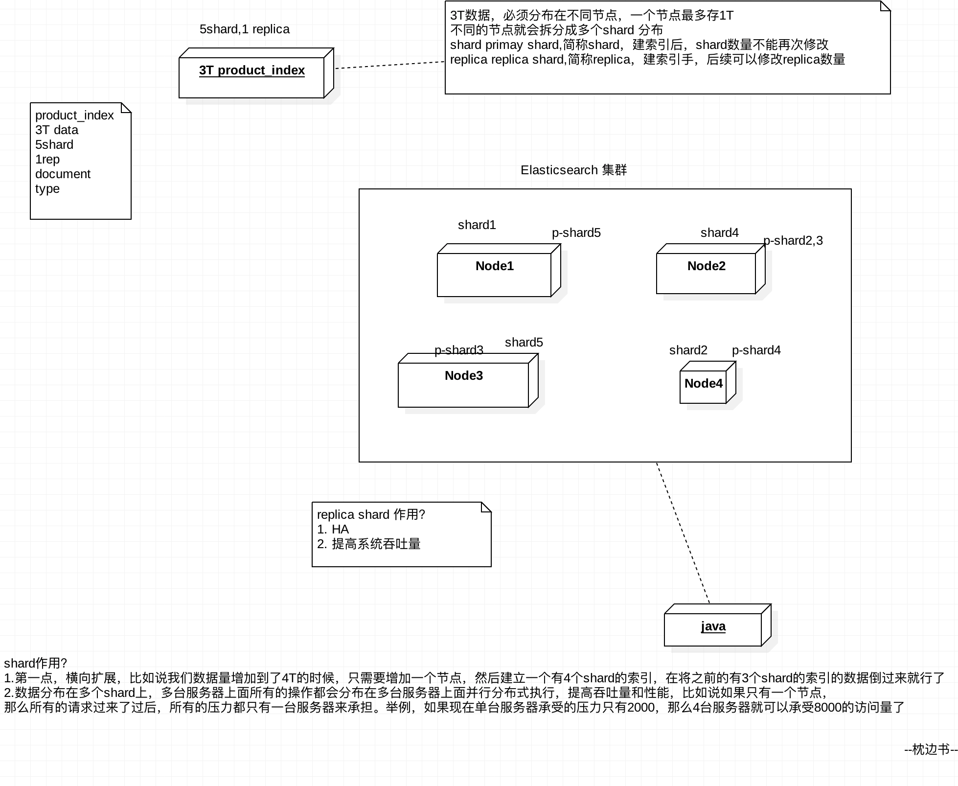 单台机器无法存储大量数据,es可以将一个索引中的数据切分为多个shard,分布在多台服务器上存储。有了shard就可以横向扩展,存储更多数据,让搜索和分析等操作分布到多台服务器上去执行,提升吞吐量和性能。