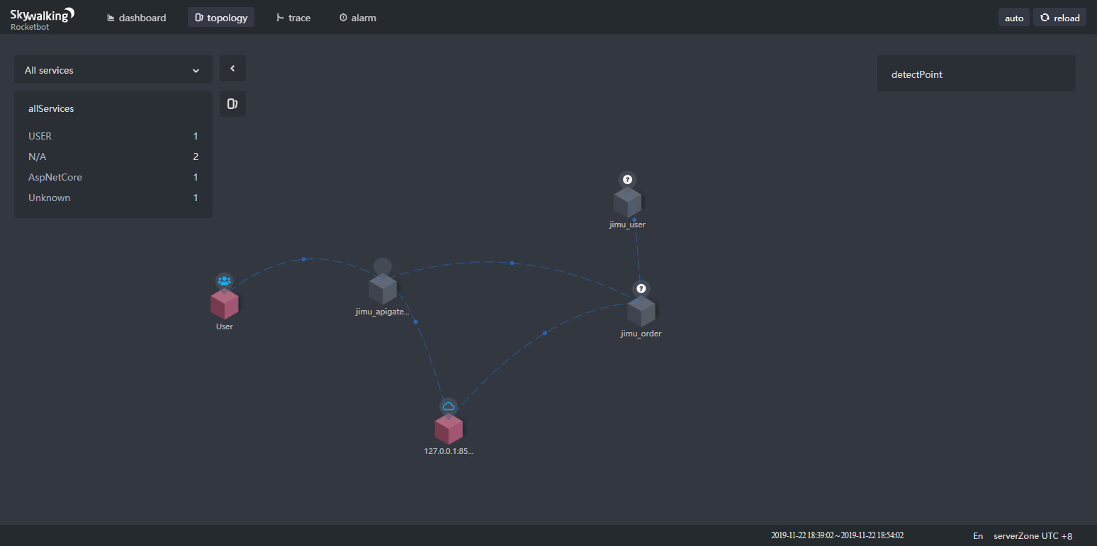 拓扑图: user -> jimu_apigateway -> jimu_order -> jimu_user