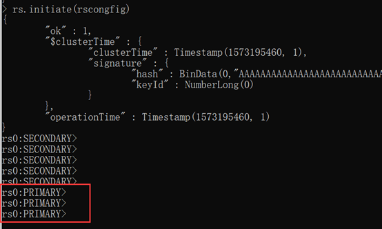 如果都成功,可以写入数据看一下复制集中是否有数据。