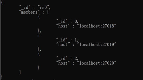 rscongfig={"_id":"rs0",members:[{_id:0,host:"localhost:27018"},{_id:1,host:"localhost:27019"},{_id:2,host:"localhost:27020"}]}