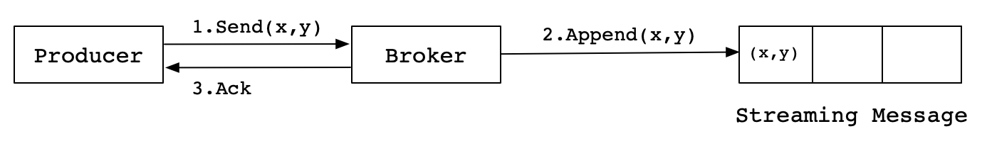 Kafka在引入幂等性之前,Producer向Broker发送消息,然后Broker将消息追加到消息流中后给Producer返回Ack信号值。实现流程如下: