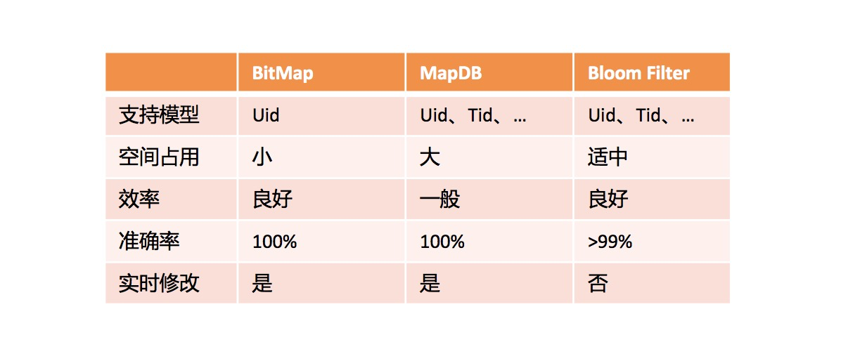 有了路由表,接下来就要解工程化应用的问题,性能、空间、灵活性和准确率,以及对服务稳定性的影响这几个方面是要进行综合考虑的,首先考虑外部存储会增加服务的稳定性风险,后面我们在BloomFilter 、BitMap和MapDB多种方案中选择BloomFilter,万分之几的误命中率导致的跨单元路由在业务可接受范围内。