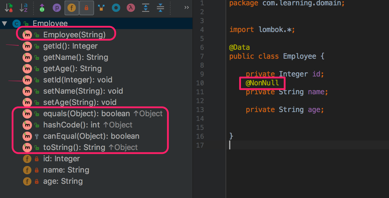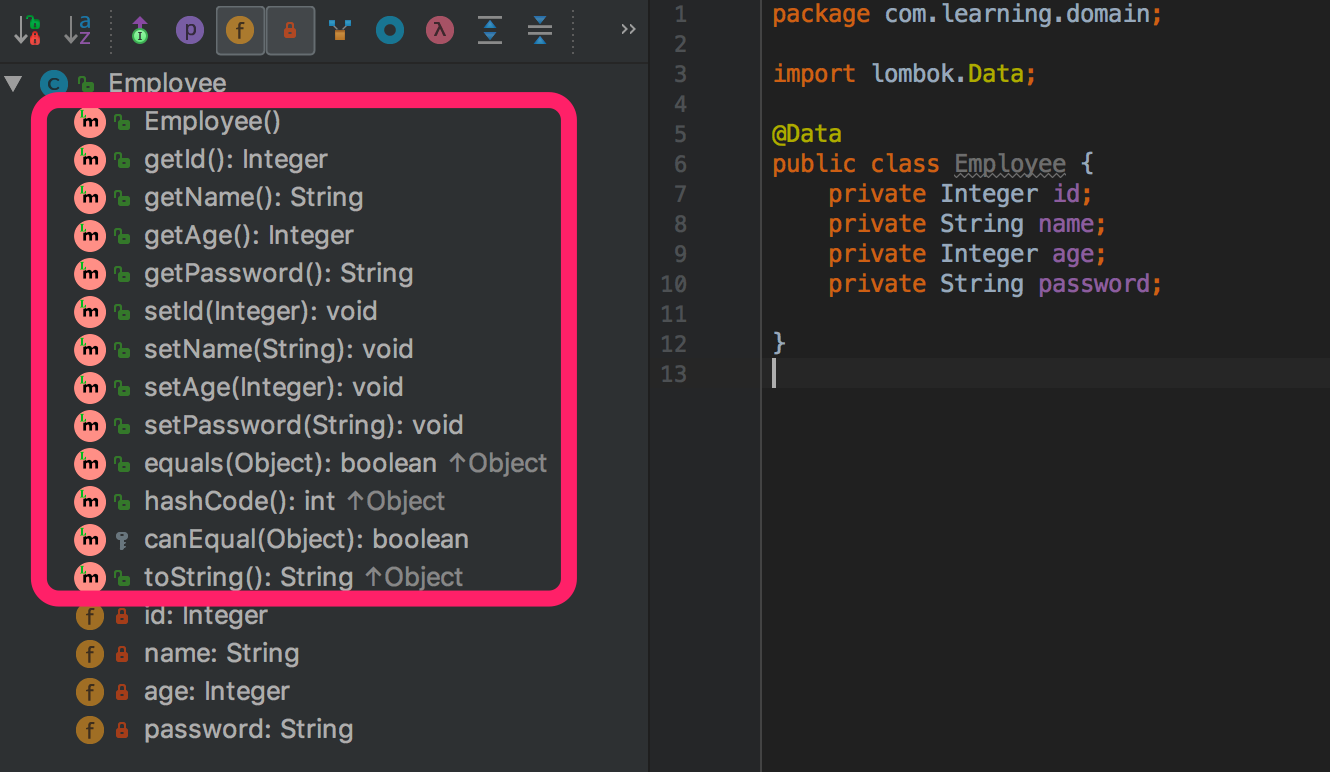 一眼可以观察出来我们在编写 Employee 这个类的时候通过 @Data
