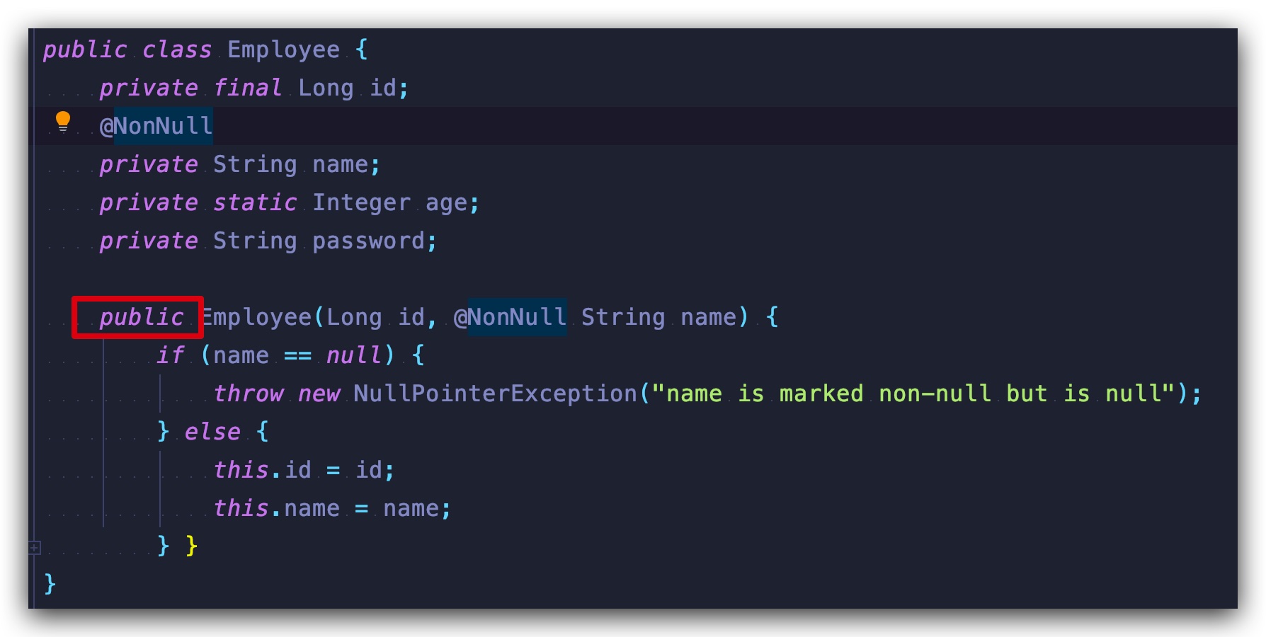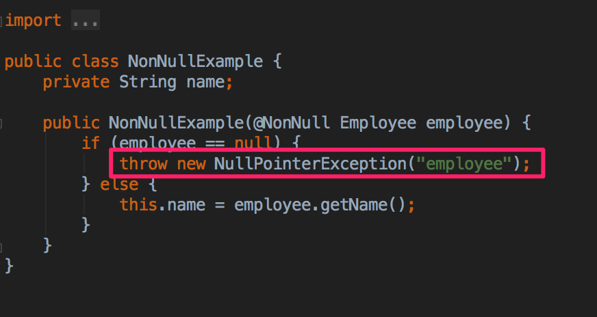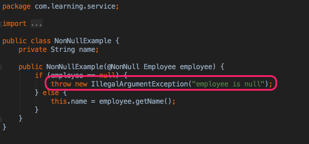 重新编译NonNullExample类,已经为我们抛出非法参数异常: