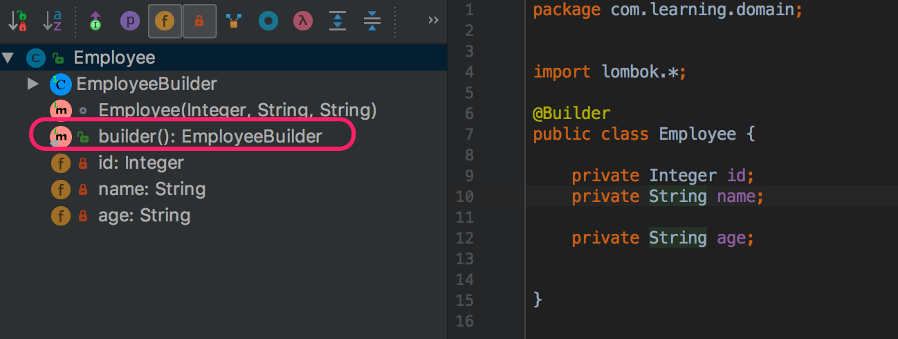 就带来了这个功能,生成一系列的builder API,该注解也需要应用在类上,看下面的例子就会更加清晰明了。