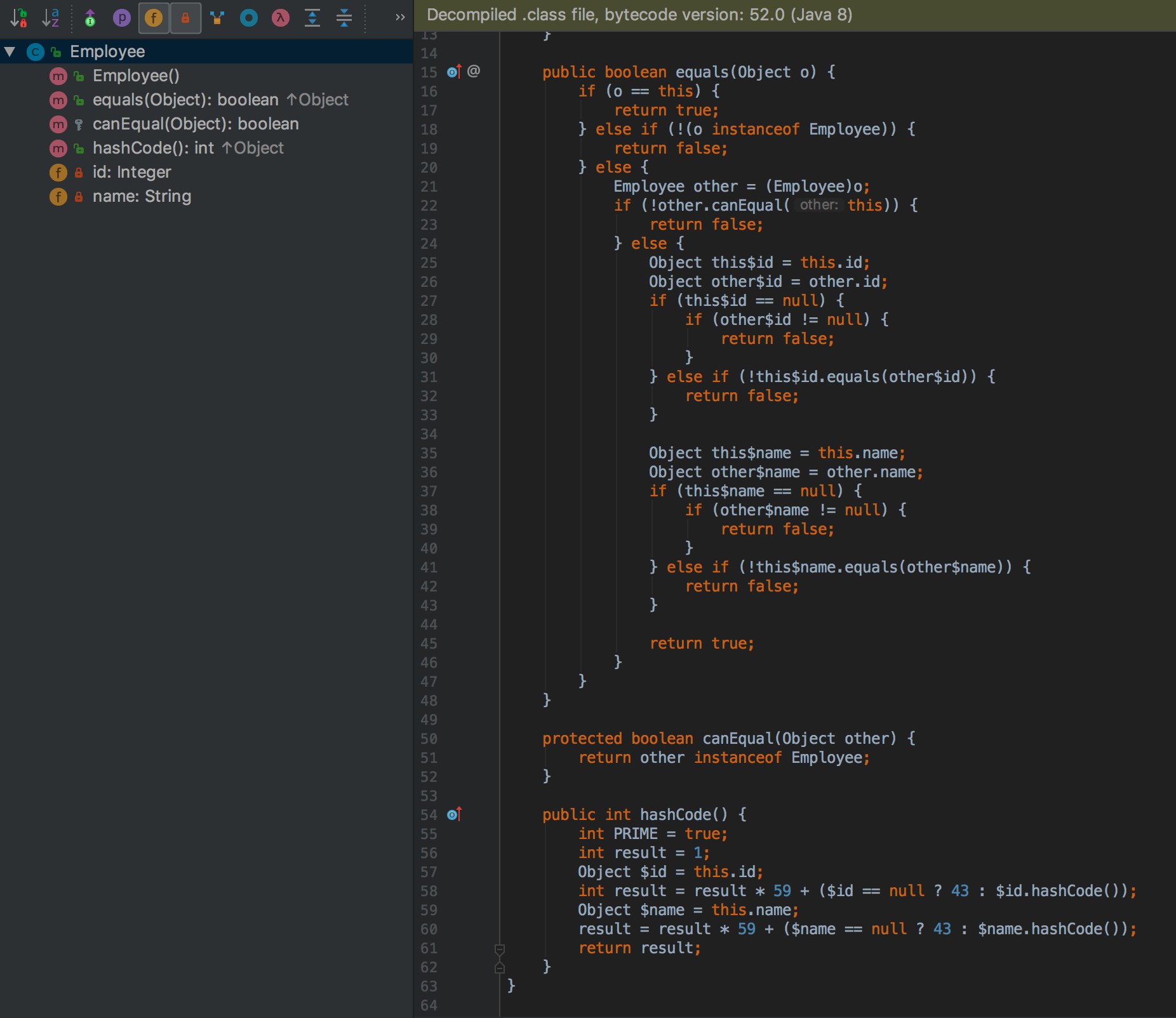 查看编译后的Employee.class得到我们预期的结果,如下图