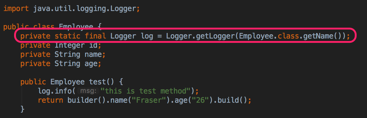 该注解需要应用到类上,在编写服务层,需要添加一些日志,以便定位问题,我们通常会定义一个静态常量Logger,然后应用到我们想日志的地方,现在一个注解就可以实现: